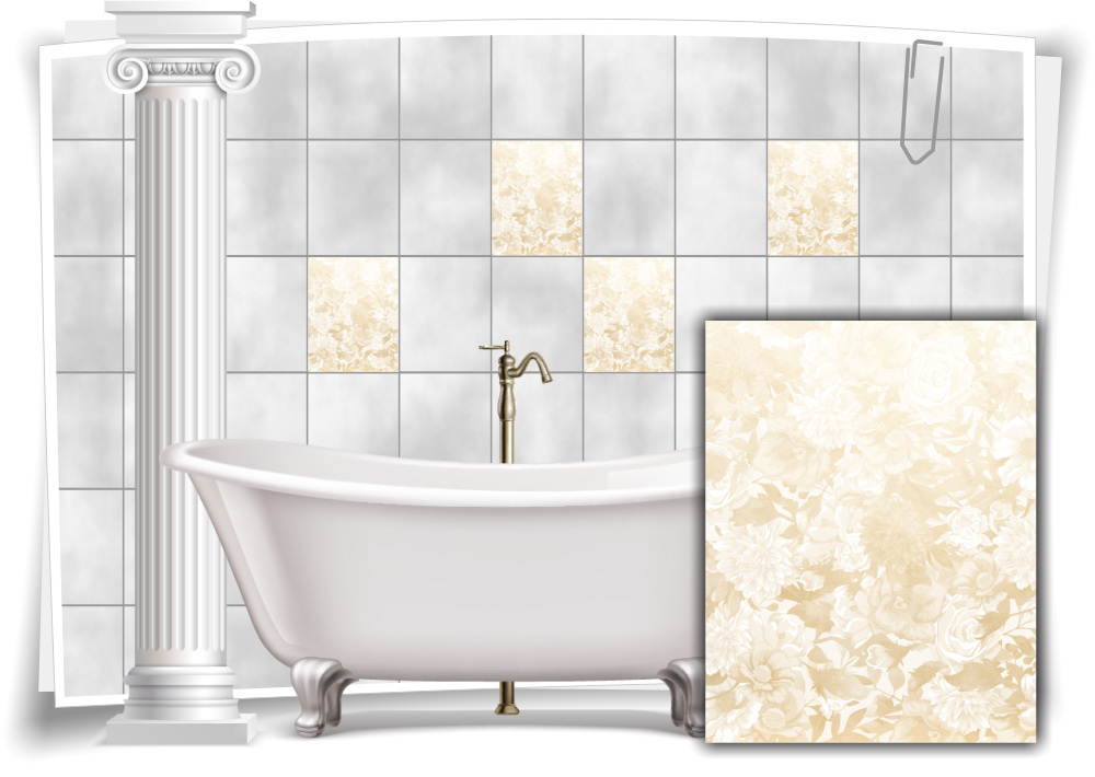 Veröffentlicht 20. April 2019 bei 1000 × 710 in fliesen-aufkleber-fliesen-bild-vintage-nostalgie-blumen-pastell-beige-gelb-bad-wc-deko