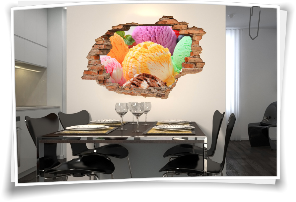 3D Wand-Bild Wand-Tattoo Wand-Aufkleber Eis-Kugel verschiedene Sorten Deko