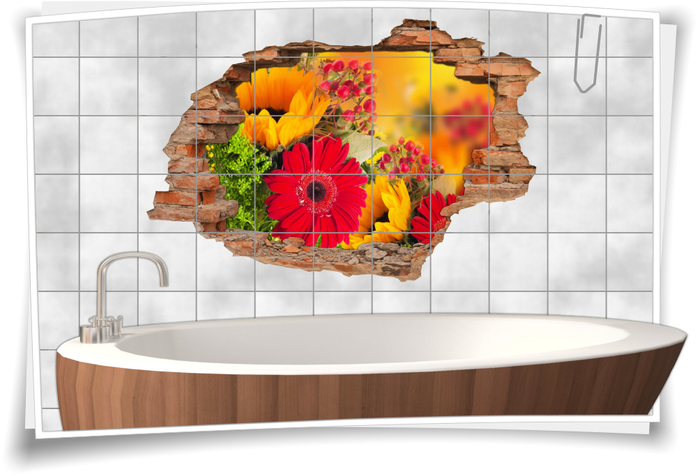 3D Fliesen-Bild Fliesen-Aufkleber Herbstlich Gerber Sonnen-Blumen Bilder