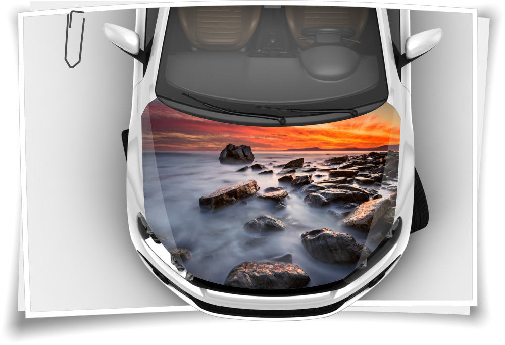 Motorhaube Auto-Aufkleber Dämmerung Felsen Sonne Wolken Meer Steinschlag-Schutz-Folie Airbrush Tuning