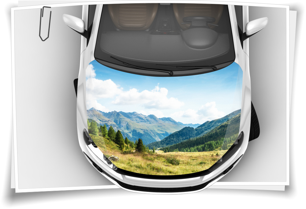 Motorhaube Auto-Aufkleber Berge Landschaft Natur Bäume Wolken Wiese Steinschlag-Schutz-Folie Airbrush Tuning