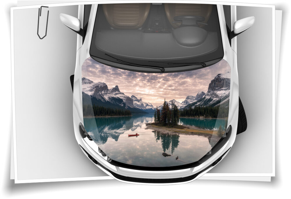 Motorhaube Auto-Aufkleber Berge Insel See Wald Natur Landschaft Boot Steinschlag-Schutz-Folie Airbrush Tuning