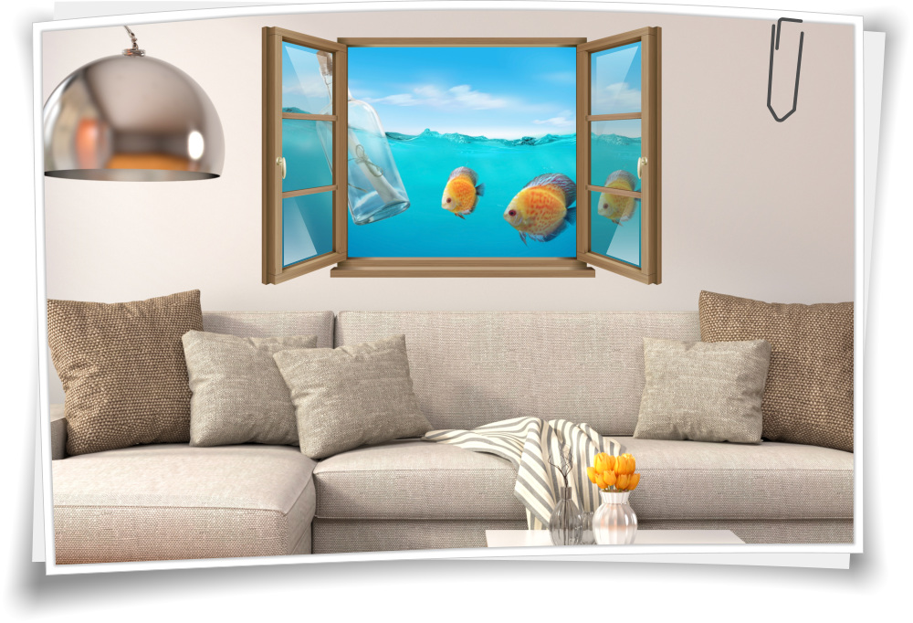 Wand-Tattoo Wand-Bild Fenster Flaschenpost Fische Wasser Aquarium Post Aufkleber Folie Deko