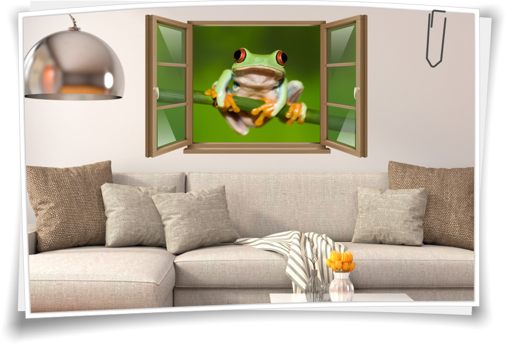 Wand-Tattoo Wand-Bild Fenster Frosch Kröte Frösche Grün Tier Figur Natur Aufkleber Folie Deko