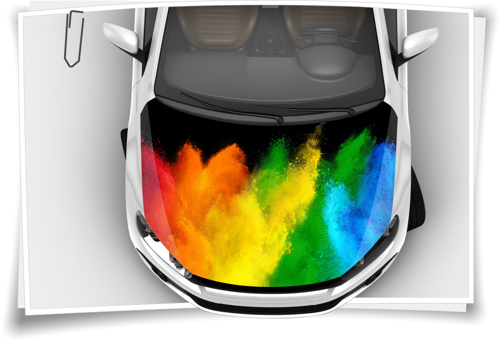 Motorhaube Auto-Aufkleber Regenbogen Pulver Explosion Bunt Rauch Steinschlag-Schutz-Folie Airbrush Tuning