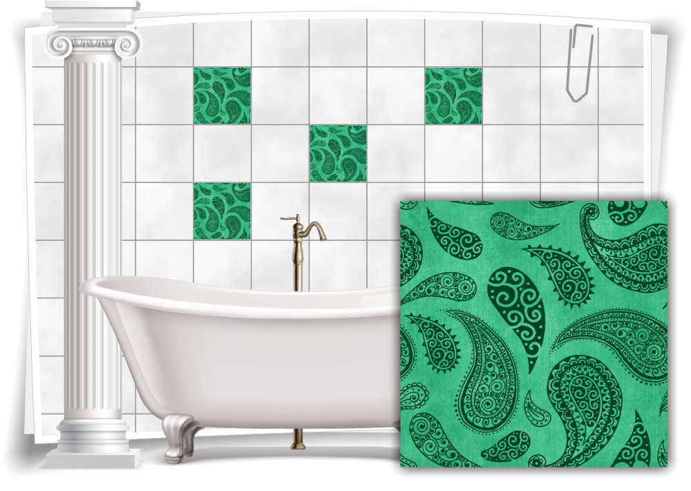 Fliesen-Aufkleber Fliesen-Bilder Paisley Barock Nostalgie Retro Floral Mint Bad WC Deko