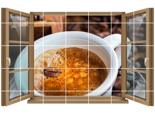 Fliesen-Aufkleber Fliesen-Bild Fenster Kaffee-Tasse Kaffee-Bohnen Weiß Braun Bad WC Aufkleber Folie Deko