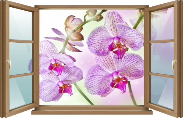 Wand-Tattoo Wand-Bild Fenster Orchidee Blume Lila Violett SPA Aufkleber Folie Deko