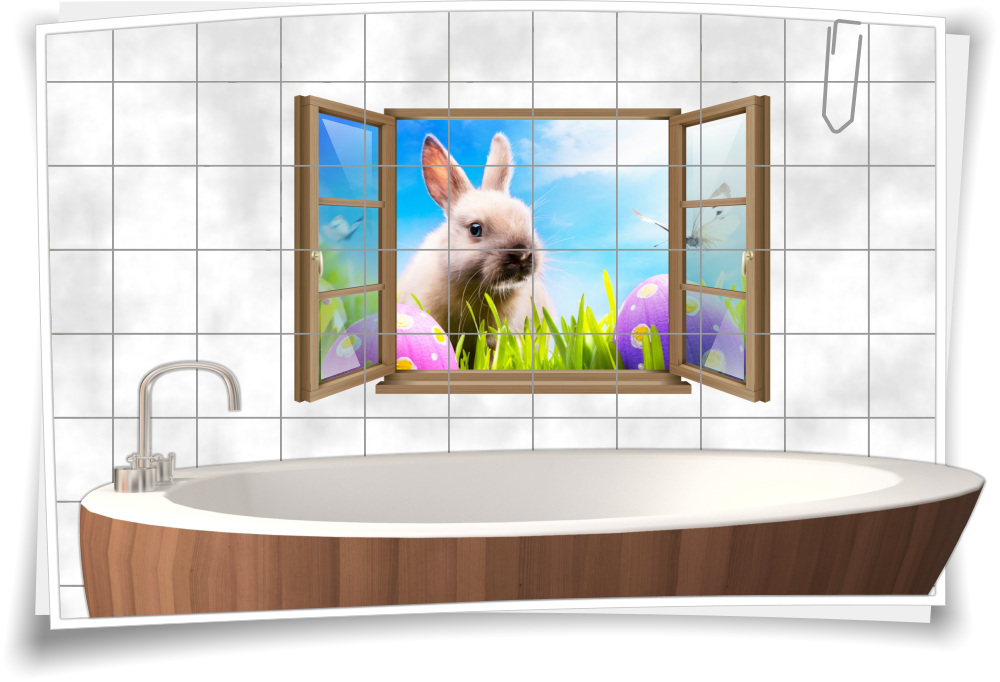 Fliesen-Aufkleber Fliesen-Bild Fenster Ostern Hase Eier Schmetterling Bad WC Aufkleber Folie Deko