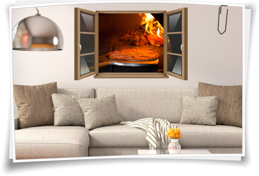 Wand-Tattoo Wand-Bild Fenster Steinofen-Pizza Feuer Glut Essen Backen Aufkleber Folie Deko