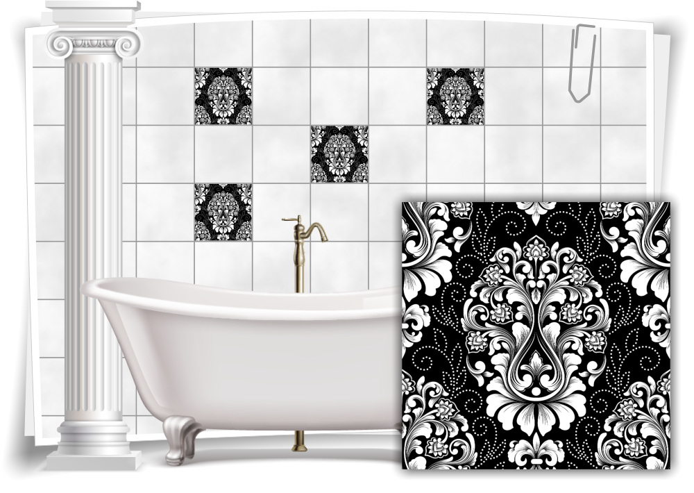 Fliesen-Aufkleber Fliesen-Bild Blumen Blätter Nostalgie Floral Schwarz Bad WC Deko