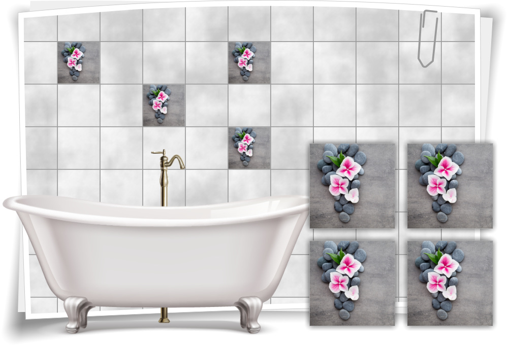 Fliesen-Aufkleber SPA Wellness Blume Blumen Steine Beton Grau Rosa Bad WC Deko