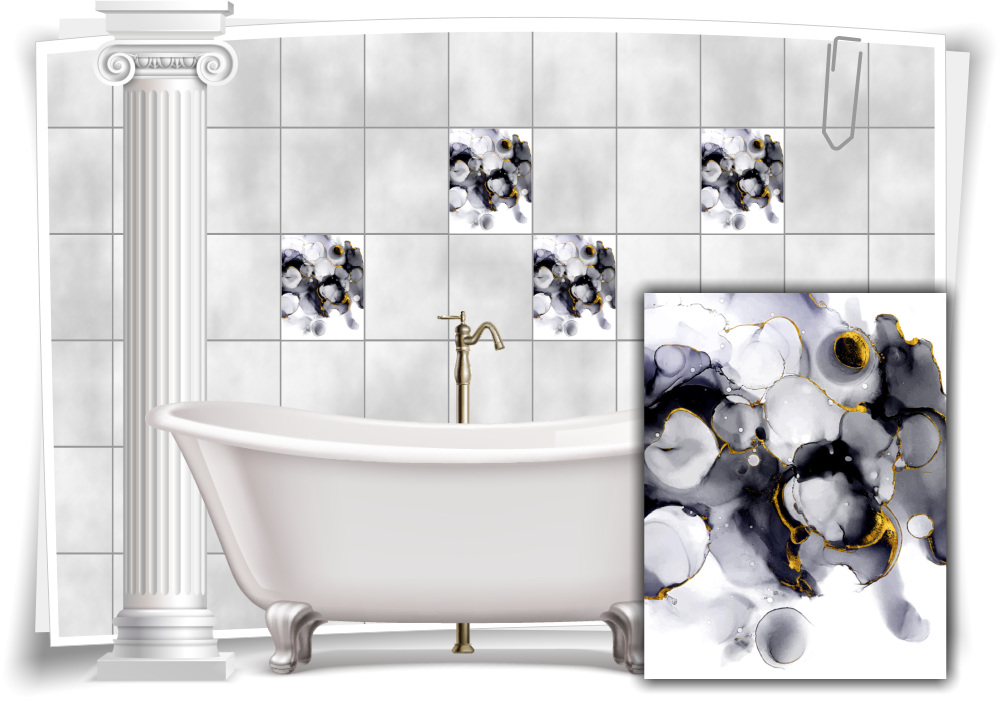 Fliesen-Aufkleber Folie Marmor Öl Ölfarben Abstrakt Gold Grau Bad WC Deko Küche