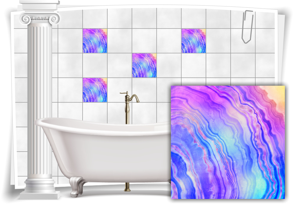 Fliesen-Aufkleber Folie Marmor Öl Ölfarben Abstrakt Lila Blau Bunt Bad WC Deko Küche