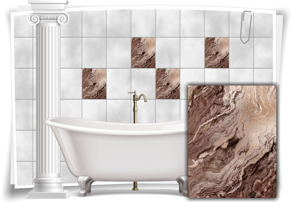Fliesen-Aufkleber Folie Marmor Öl Ölfarben Abstrakt Braun Beige Bad WC Deko Küche
