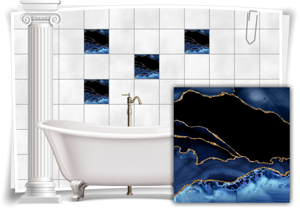 Fliesen-Aufkleber Folie Marmor Öl Ölfarben Abstrakt Schwarz Blau Gold Bad WC Deko Küche