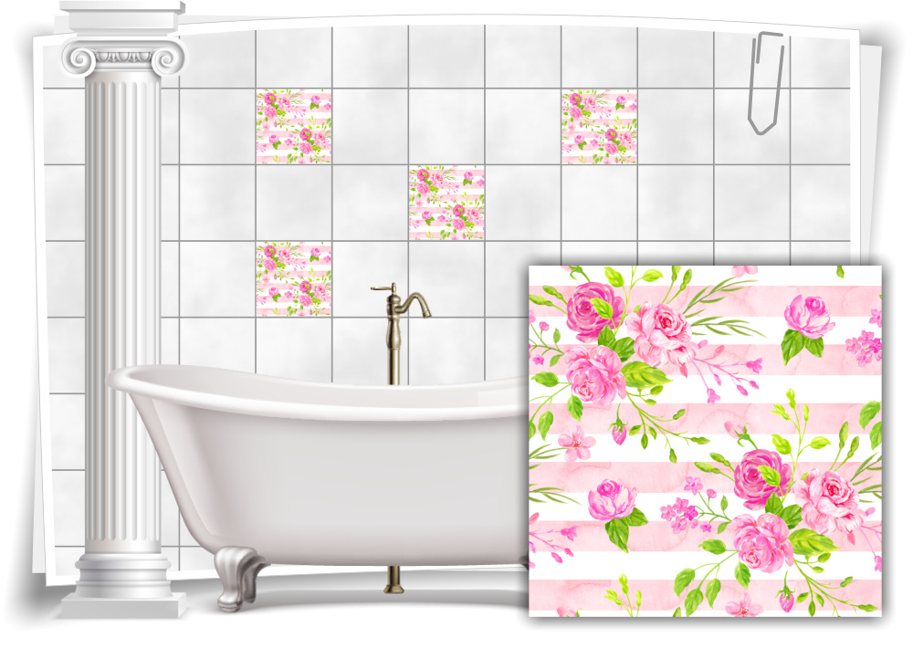 Fliesen-Aufkleber Fliesen-Bild Blumen Blätter Nostalgie Floral Rosa Bad WC Deko