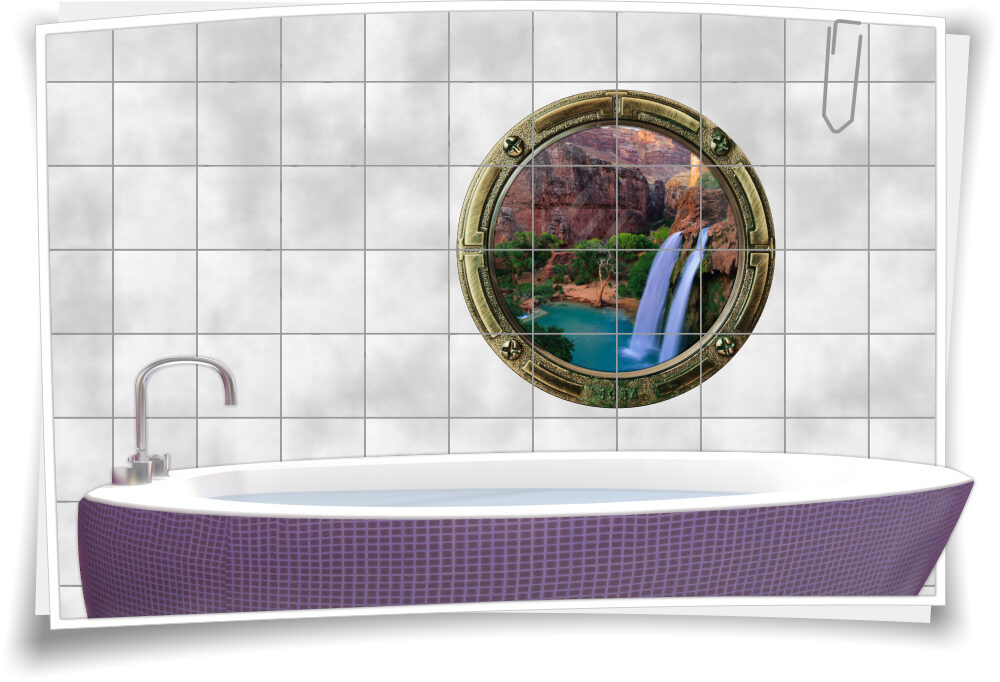 Das Motiv wird auf Ihre Fliesengröße zugeschnitten und muss nur noch verklebt werden.