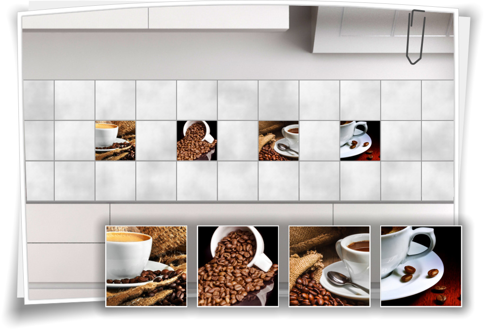 Fliesen-Aufkleber Kaffee Cappuccino Latte-Macchiato Espresso Kaffeebohnen Küche Deko