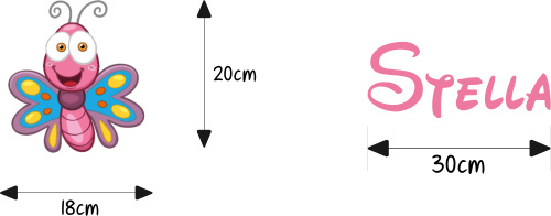 Bei diesem Angebot handelt es sich um zwei selbstklebende Folien, das Motiv als Digitaldruck und den Kindernamen.