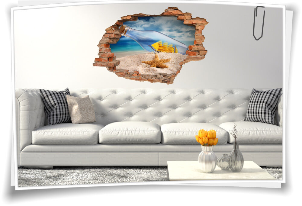 Wandbild Wanddurchbruch Flaschenpost Sand Schiff