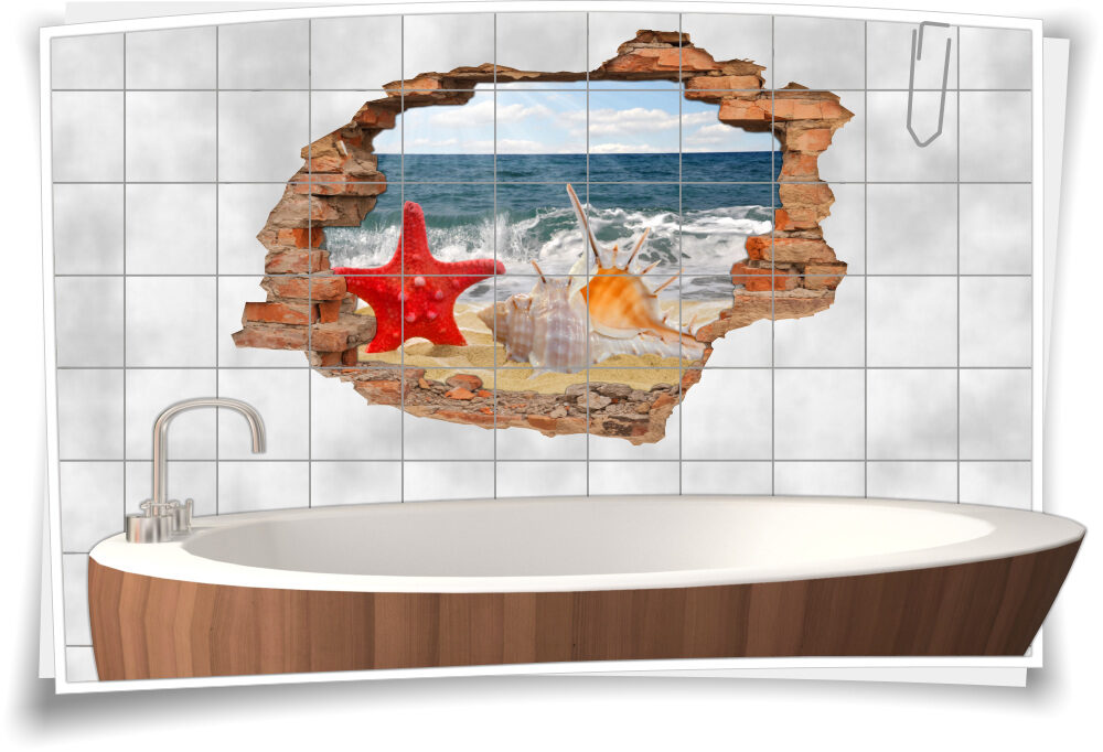 Fliesenaufkleber Wanddurchbruch Strand Meer Seestern Muschel