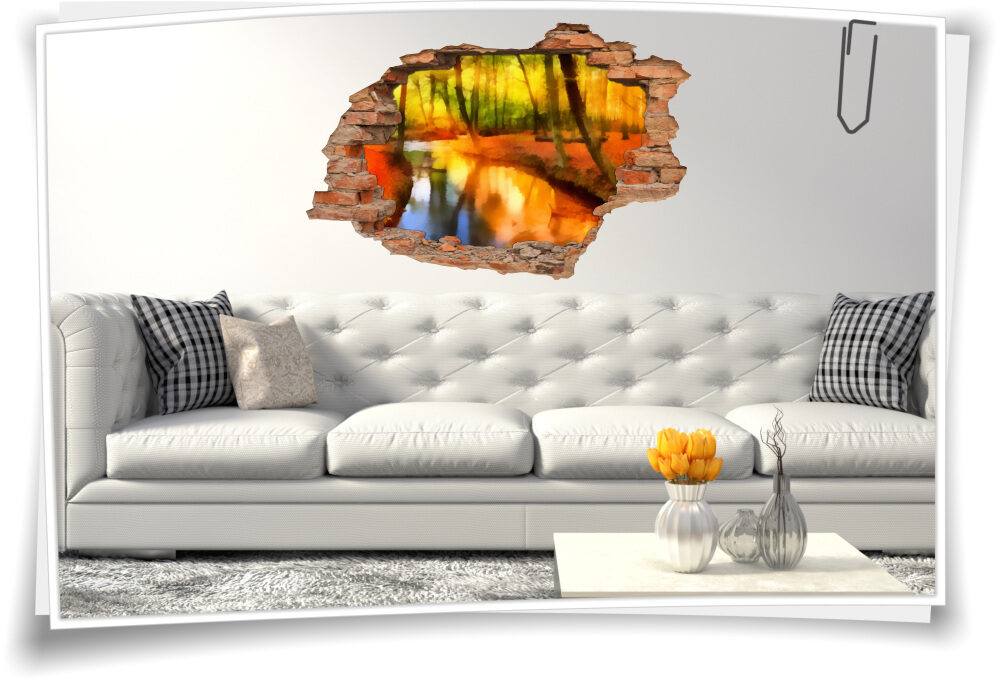 Wandbild Wanddurchbruch Herbst Wald Bach Gemälde Abstrakt