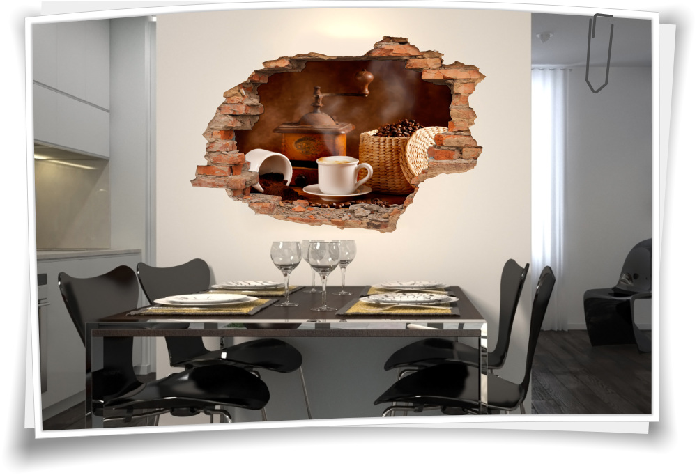 Wandbild Wanddurchbruch Kaffee Mühle Kaffeebohnen Kaffeetasse