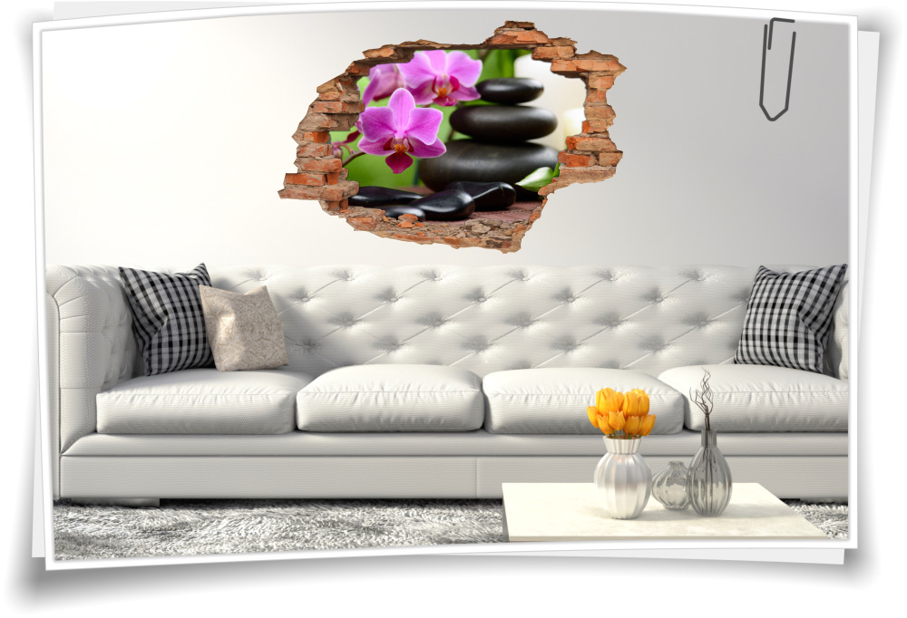 Wandbild Aufkleber Wanddurchbruch Wellness Entspannung Zen Orchidee