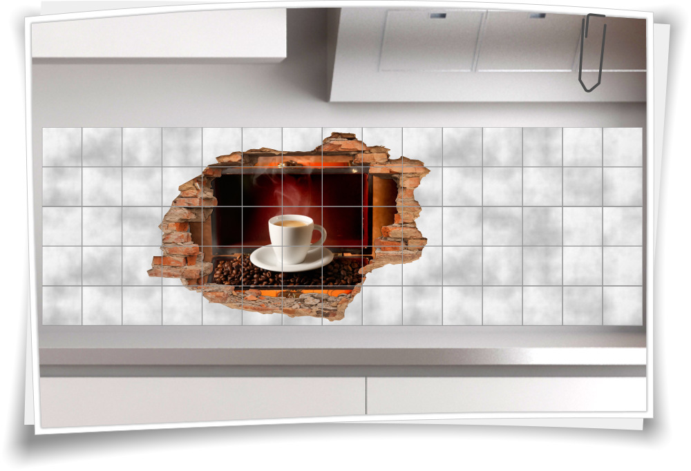 Fliesenaufkleber Wanddurchbruch Küche Kaffee Kaffeebohnen Aroma