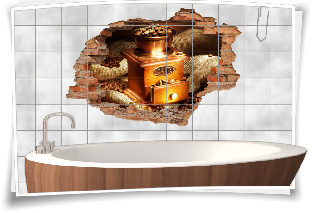 Fliesenaufkleber Wanddurchbruch Kaffeemühle Kaffee Kaffeebohnen Bohnen
