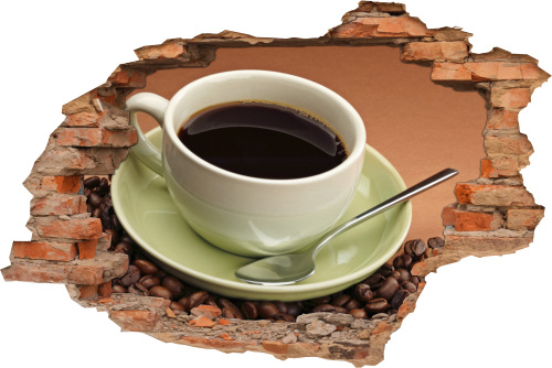 Wandbild Aufkleber Wanddurchbruch Kaffee Kaffeebohnen Bohnen Tasse