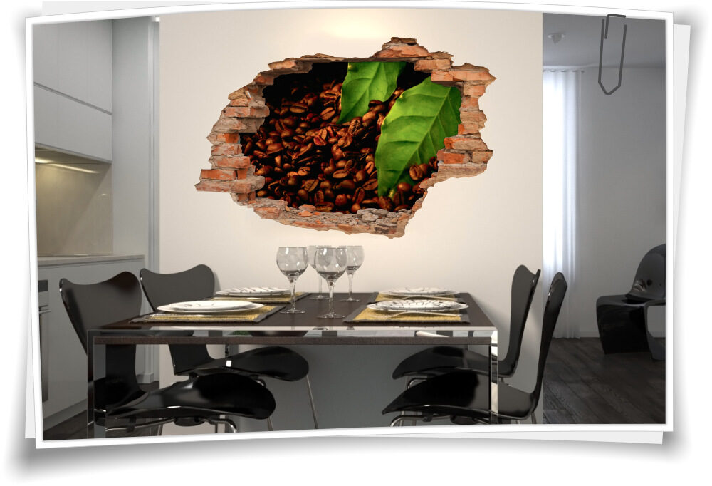 Wandbild Aufkleber Wanddurchbruch Kaffee Kaffeebohnen Bohnen Tasse