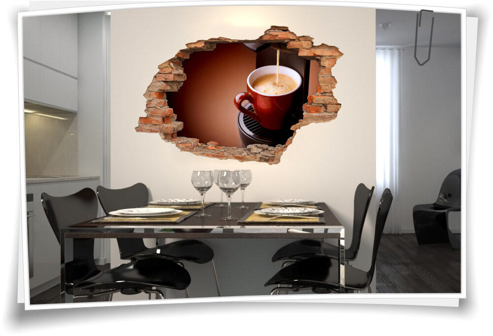 Wandbild Aufkleber Wanddurchbruch Kaffee Espresso Latte macchiato