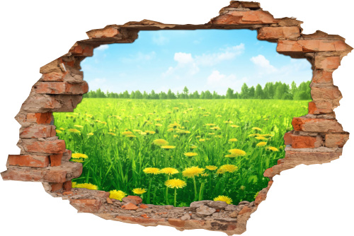 Wandbild Aufkleber Wanddurchbruch Natur Landschaft Wiese Löwenzahn