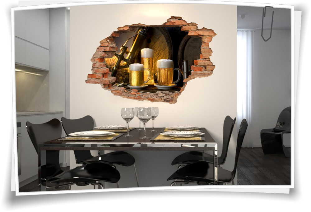 Wandbild Aufkleber Wanddurchbruch Bier Bierfass Beer