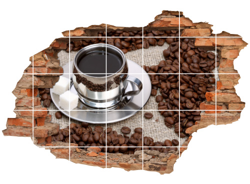 Fliesenaufkleber Aufkleber Wanddurchbruch Kaffee Kaffeebohnen Tasse Jute
