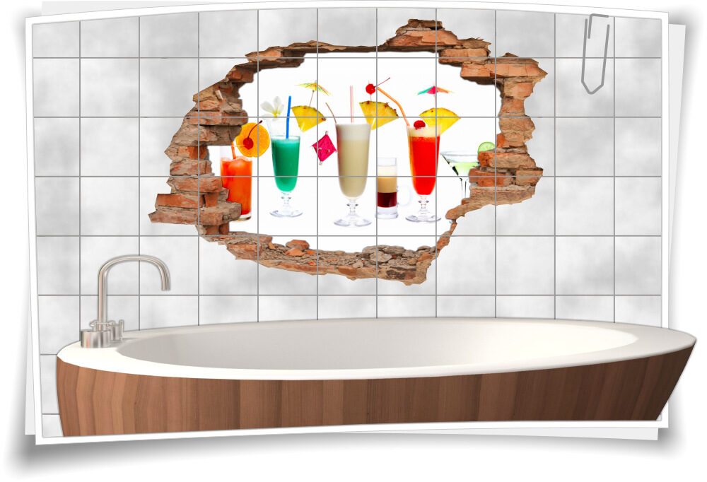 Fliesenaufkleber Aufkleber Wanddurchbruch Cocktail Getränke Party Longdrink