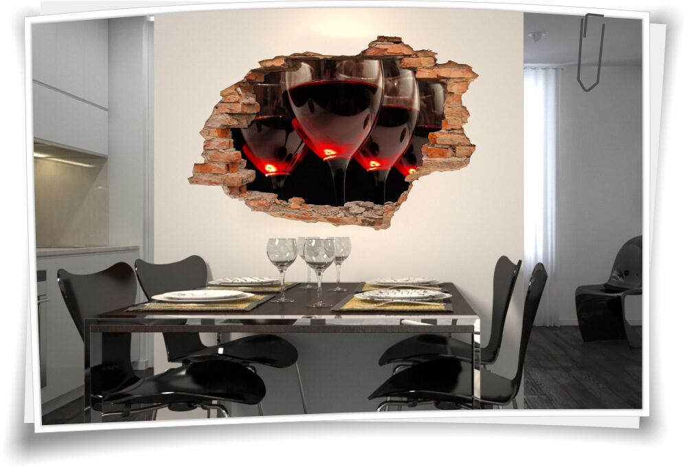 Wandbild Aufkleber Wanddurchbruch Wein Rotwein Getränke
