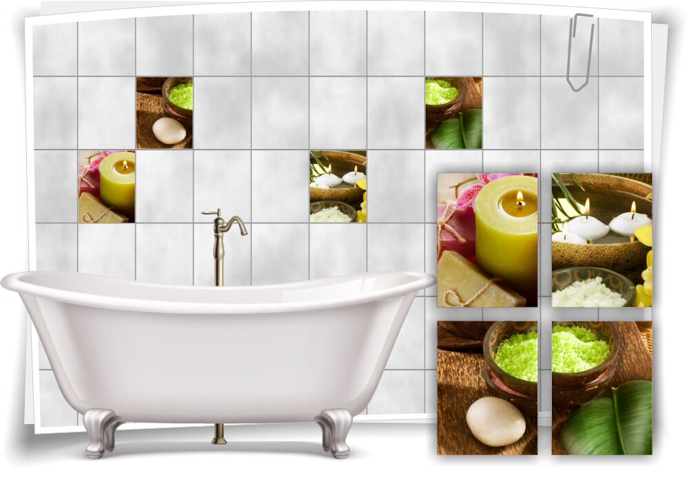 Fliesenaufkleber Fliesenbilder Kerze Wasser Salz Wellness SPA