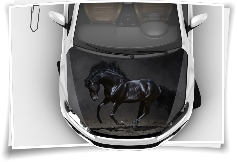 Pferd Hengst Schwarz Motorhaube Auto-Aufkleber Steinschlag-Schutz-Folie Airbrush Tuning
