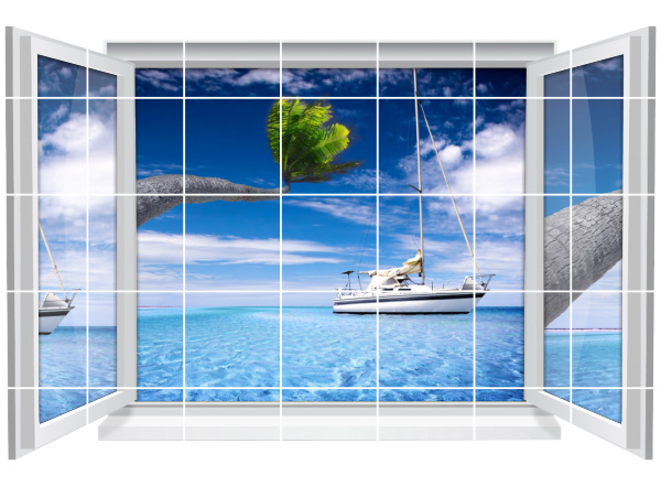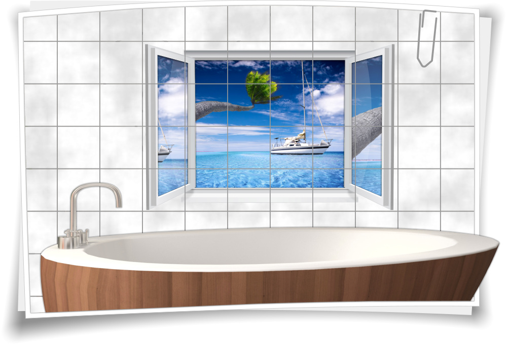 Fliesenaufkleber Fliesenbild Fenster Meer Boot Bad WC Fliesen