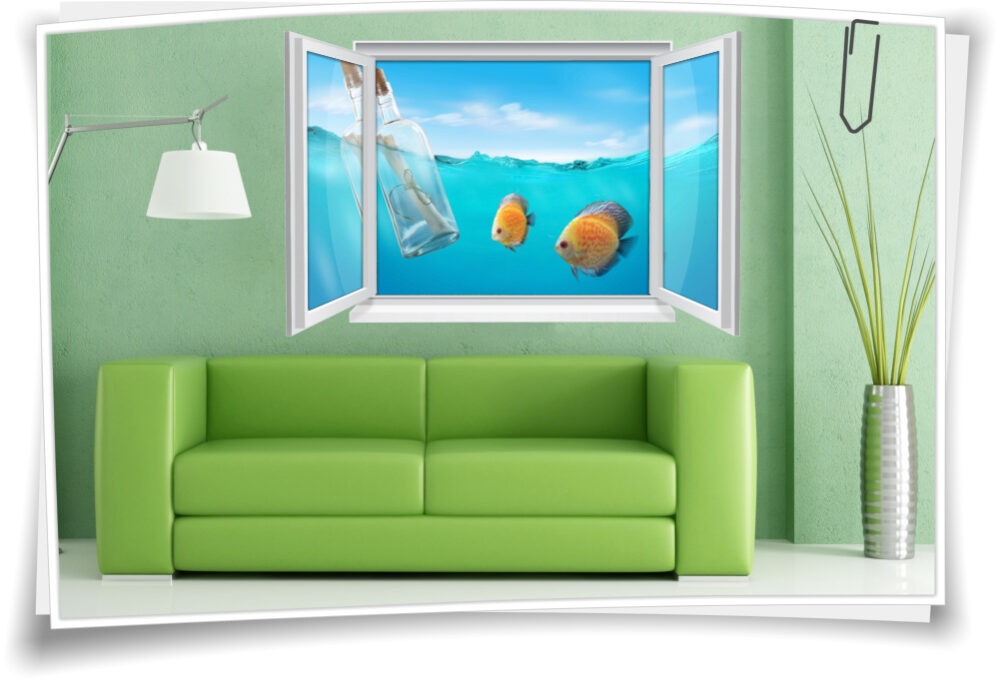 Wandtattoo Wandbild Fenster Unterwasser Fische Meer Wohnzimmer Deko