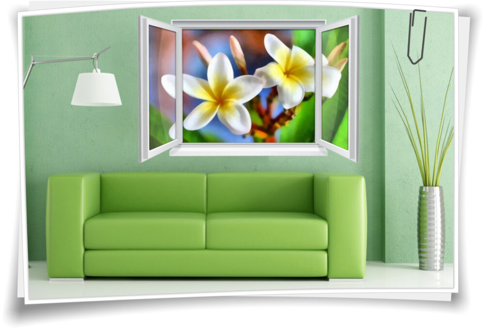 Wandtattoo Wandbild Fenster Plumeria Blüte Wohnzimmer Deko