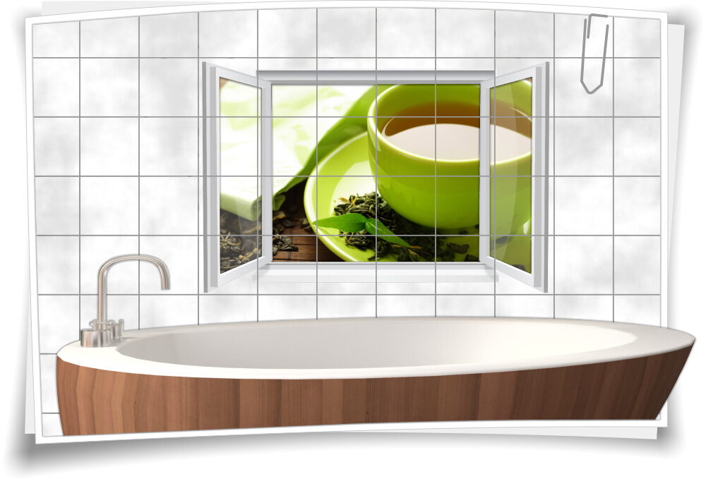 Fliesenaufkleber Fliesenbild Fenster Tee Teezeit Kräutertee Bad WC Küche Fliesen Deko