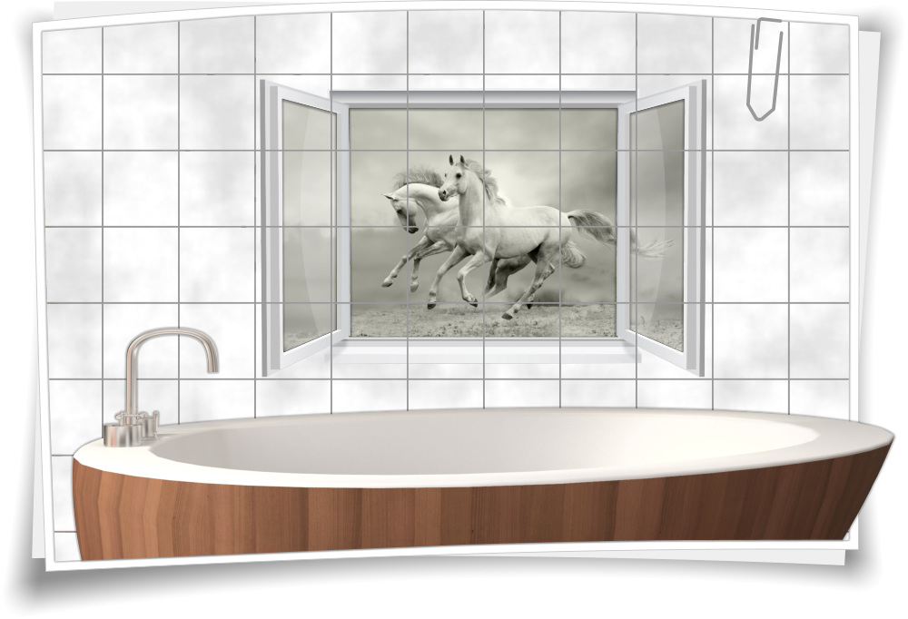 Fliesenaufkleber Fliesenbild Fenster Pferde Reiten Bad WC Fliesen Deko