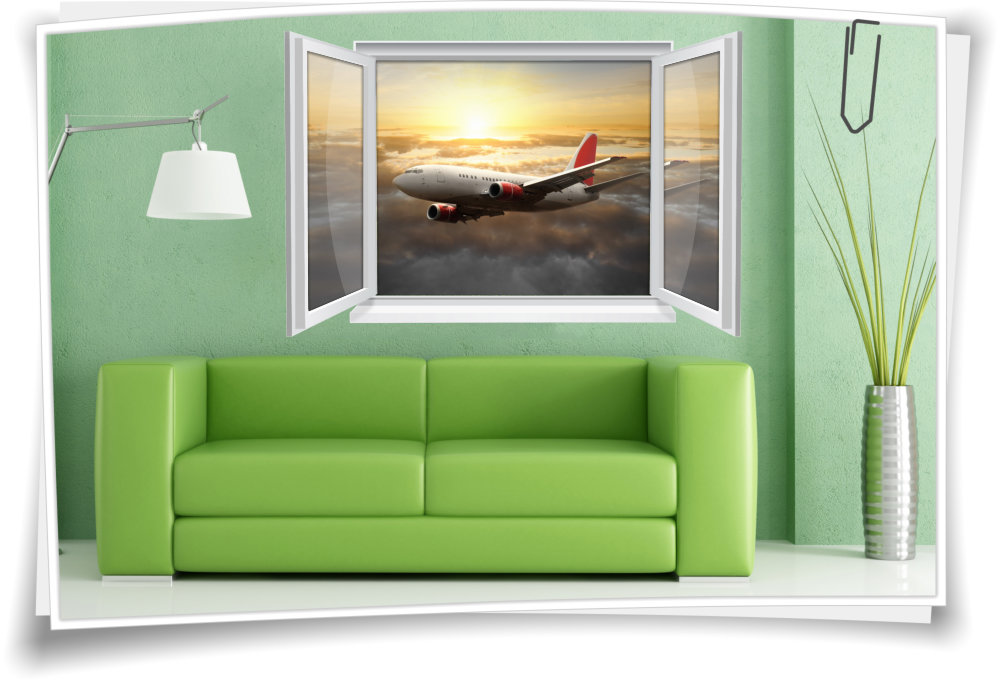 Wandtattoo Wandbild Fenster Flugzeug Flieger Reise Himmel Wohnzimmer Deko