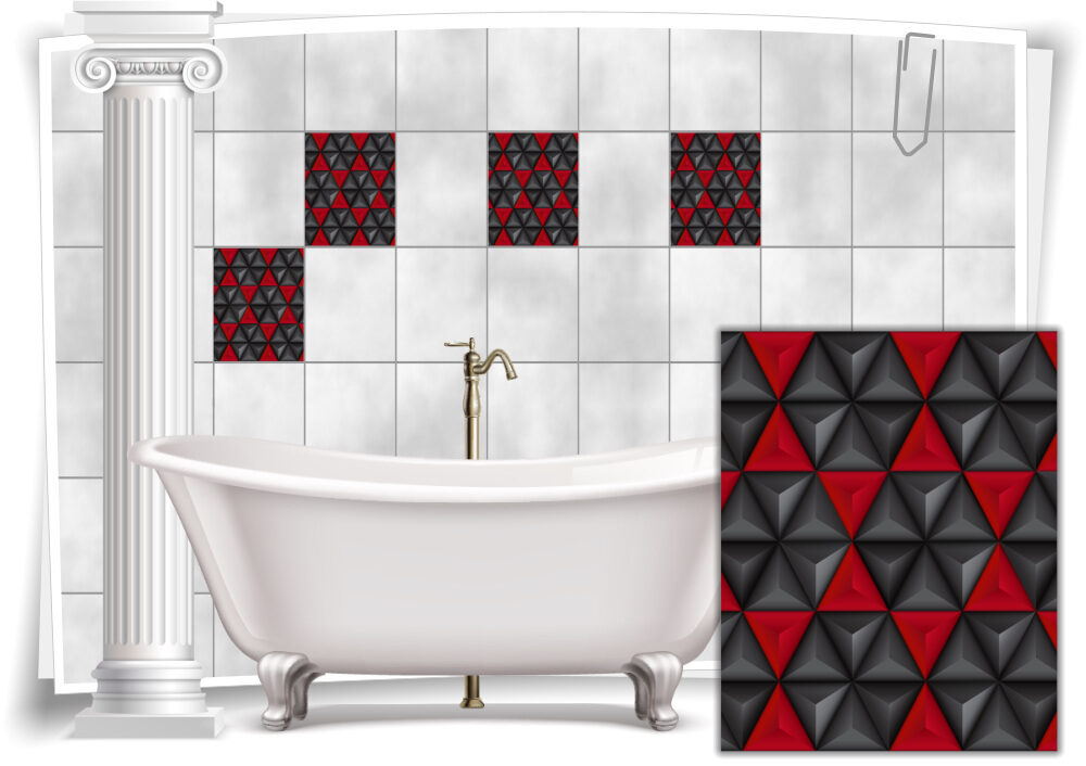 Fliesen-Aufkleber Bild Mosaik Kachel Rot Schwarz Retro Dreiecke Bad WC Deko