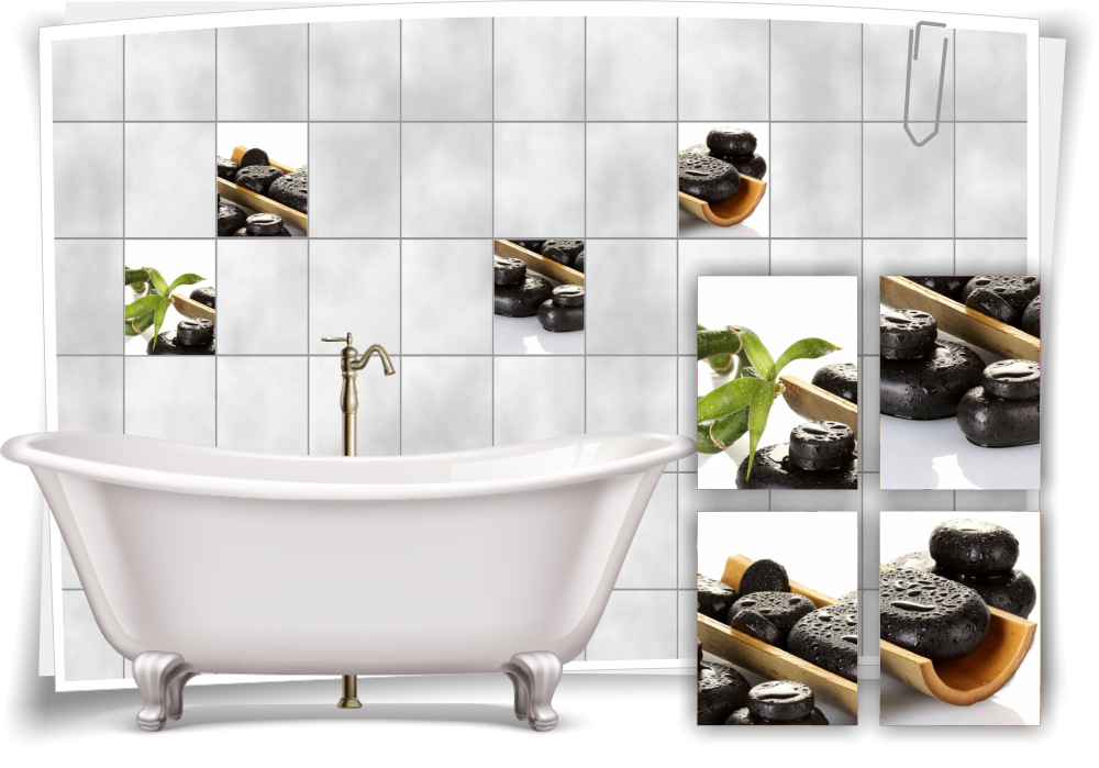 Fliesenaufkleber Fliesenbild Bambus Steine Wellness SPA Aufkleber Deko Bad WC