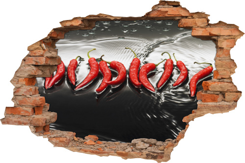 Wand-Tattoo-3D Wand-Aufkleber Wand-Bild Wand-Durchbruch Peperoni rot Wasser Energie-Quelle scharf-e-Lebensmittel schwarz
